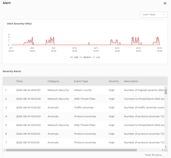 Network Security | Alert counts | Number of alerts greater than the threshold | 1 minute |